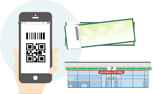 電子チケット「チケットれすQ」、セブン-イレブン発券、紙のチケット発行にも対応。紙に印字したバーコードやQRチケット認証による入場もでき、販売戦略や顧客層に合わせた選択が可能です。